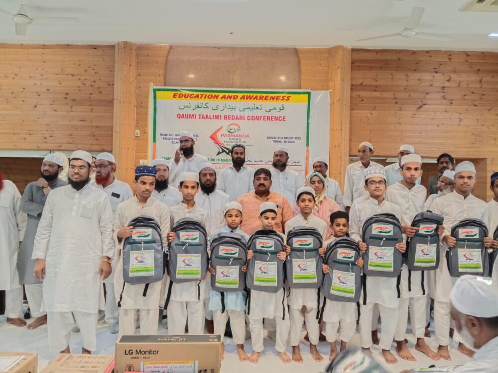 पसमांदा विकास फाउंडेशन के तत्वावधान में दिल्ली के जमीअत उलेमा-ए-हिंद के मदनी हॉल में ‘कौमी तालीमी बेदारी कॉन्फ़्रेंस’ का आयोजन किया गया। इस अवसर पर मदरसों को कंप्यूटर सेट तथा करीब 225 पसमांदा छात्रों को तालीमी किट का निःशुल्क वितरण किया गया। कार्यक्रम का मुख्य उद्देश्य छात्रों को आधुनिक तकनीक से जोड़ते हुए मदरसों में शिक्षा मॉडर्न को लेकर मुहिम चलाना और जागरूकता फैलाना था।”